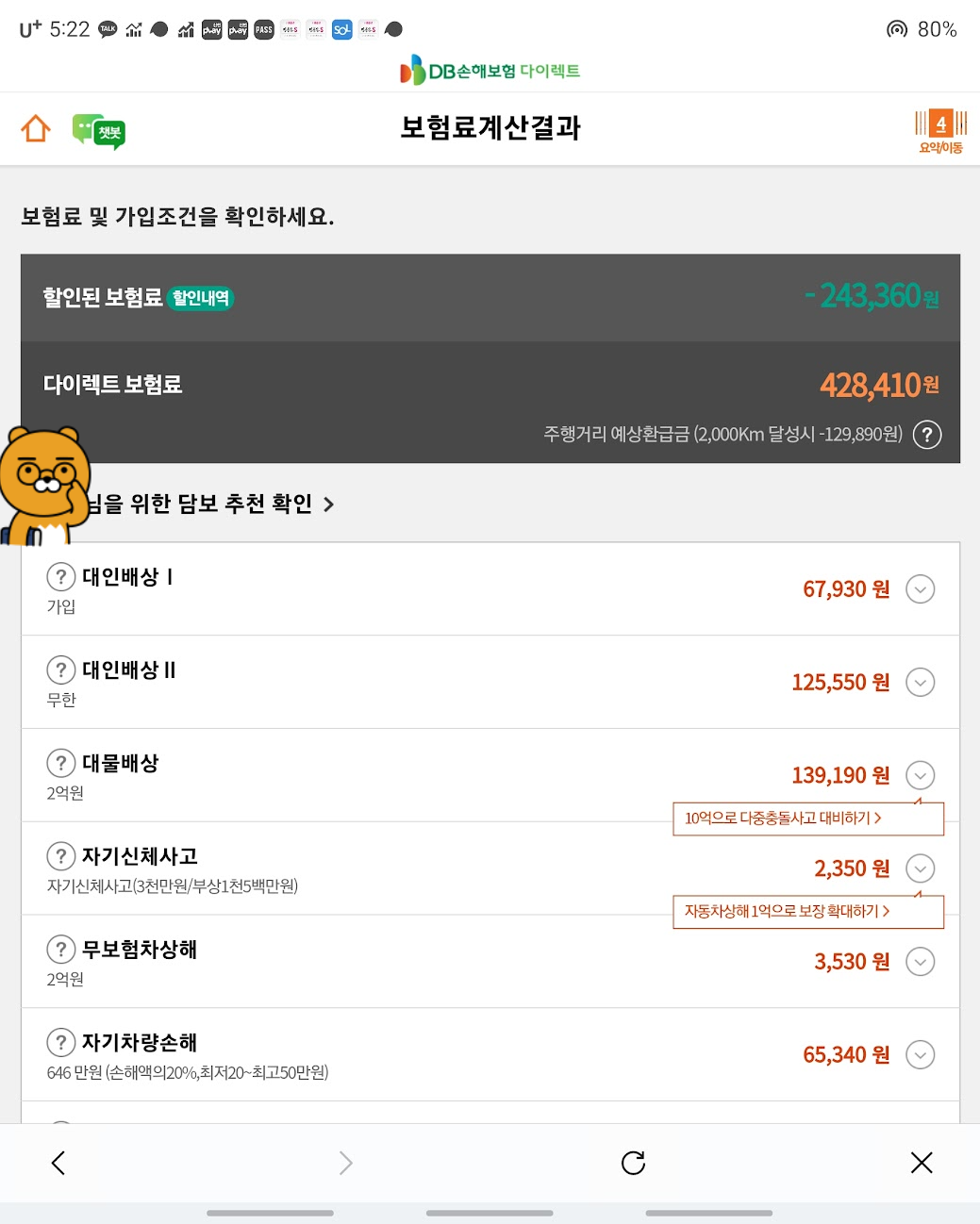 DB손해보험 다이렉트 : 428,410원