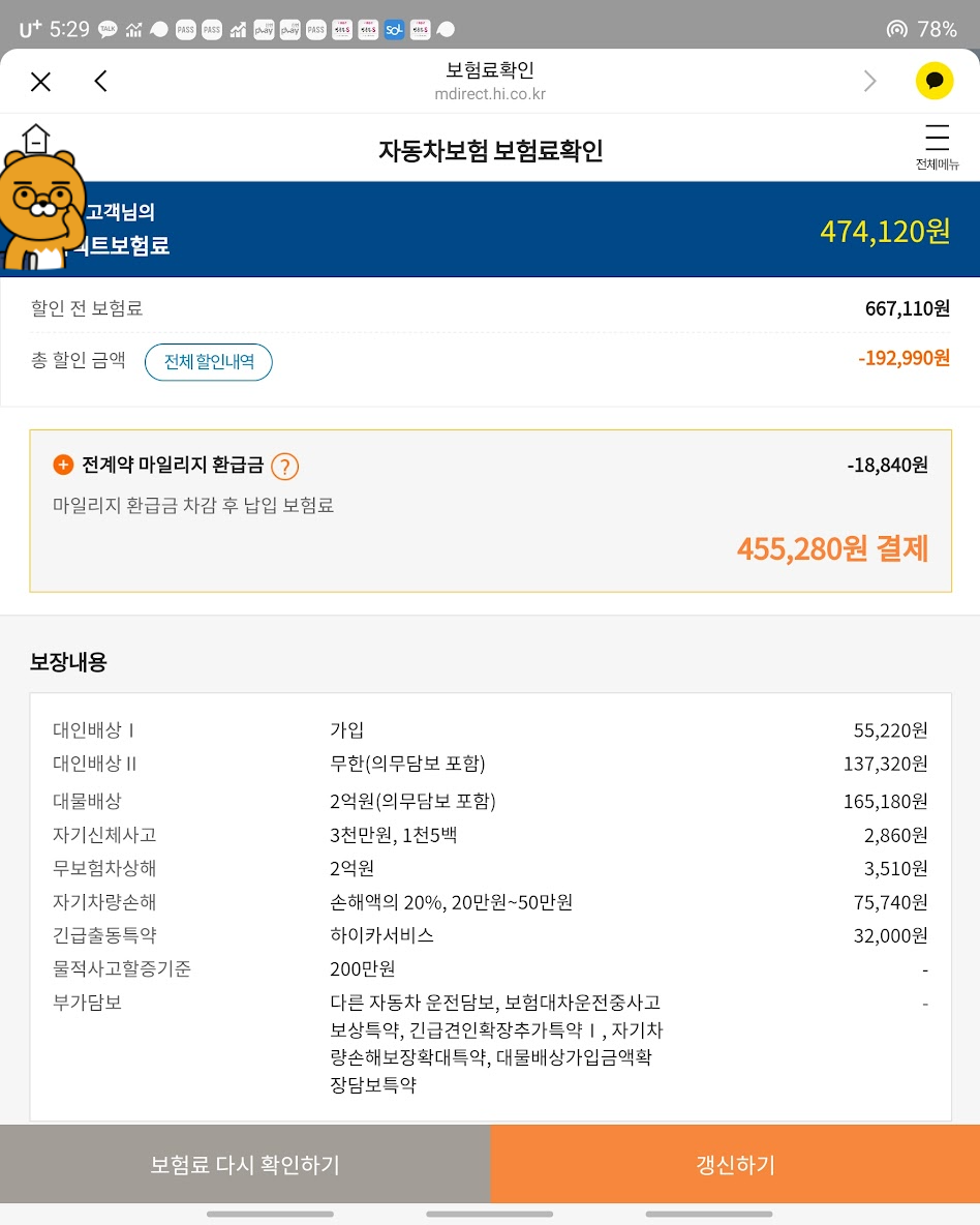 현대해상 다이렉트 : 474,120원